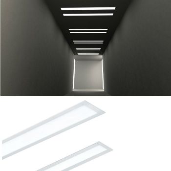 Empotrable continuo de de acero y frente de aluminio extruíudo, para techos Durlock. Difusor de Policarbonato Opto Max. Opcional dimerizable sistema Dali. IP 20.