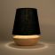 Lámpara de mesa en madera de lenga maciza torneada, terminación hidrolaca. Pantalla en tela color gris, negro o natural. Precio individual.