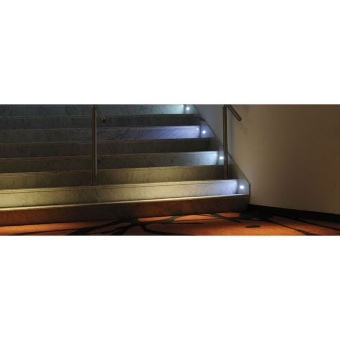 Empotrable de pared fuente de acero inoxidable, cobertor de plástico. Difusor de cristal satinado. IP 65.