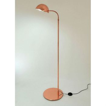Lámpara de pie de cobre con codo flexible que permite orientar la luz y cabezal con movimiento. Dimmer opcional.