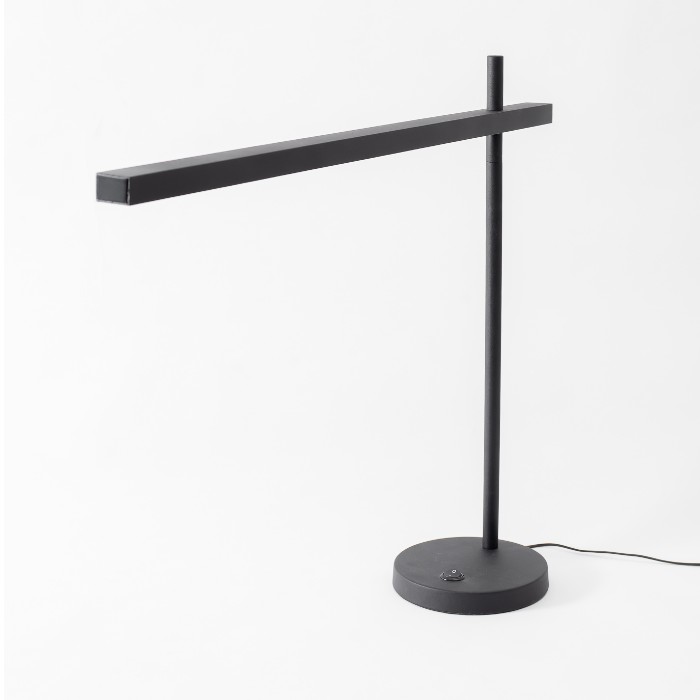Lámpara de escritorio de aluminio y hierro. Caño cromado.Pintura en polvo horneada microtexturada.