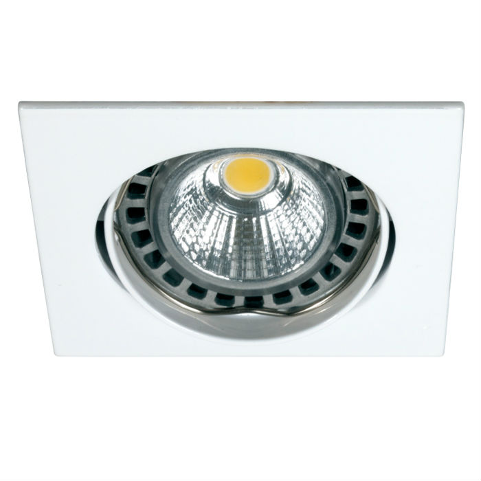 Empotrable cuadrado y móvil en techo. Cuerpo de aluminio inyectado y reflector óptico en lámpara. Distribución de luz directa y simétrica. IP 20.