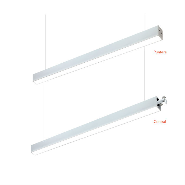 Colgante de aluminio extruído con difusor de acrílico. Distribución de luz directa y simétrica. Provisto con tensor de 2 mts. IP 20.