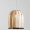 Colgante de diseño construído en chapa natural de madera de Sabugueiro. El tratamiento de la madera se realiza con una resina especial logrando que el material no se reseque con el paso del tiempo y tenga elasticidad para lograr las formas deseadas. El efecto lumínico proyecta la belleza interna de la madera irradiando una calidez especial. Resistente al calor de las lámparas y dejan pasar perfectamente la luz.