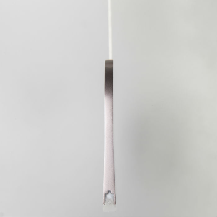 Colgante de diseño de aluminio en cobre satinado con tensores de acero.