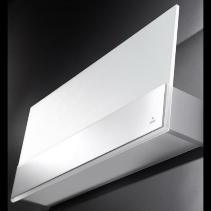 Aplique de pared minimalista de metal con cristal satinado.