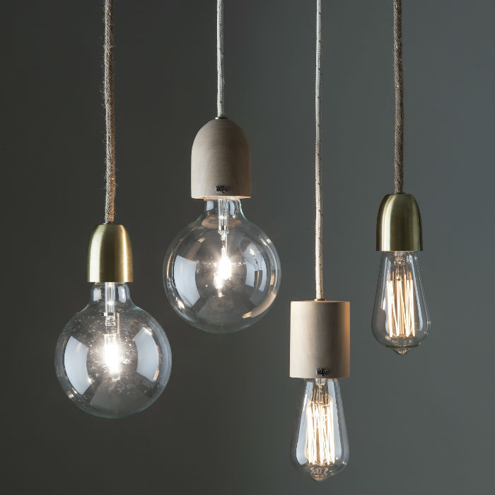 Colgante de diseño de madera. Florón chato cobre. Cable textil color marfil con dorado largo 1500mm.