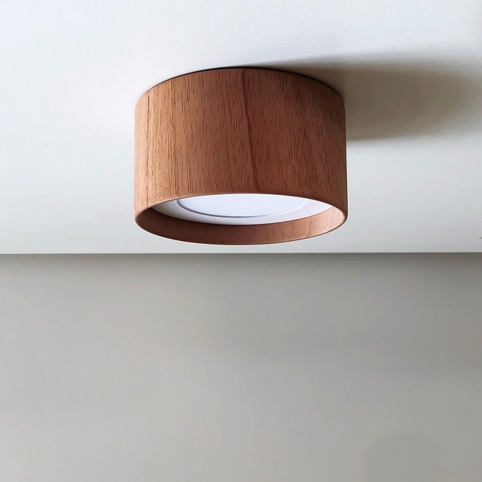 Plafón de madera de cedro torneada de manera artesanal. Aplicable a cielo raso. Luz difusa.