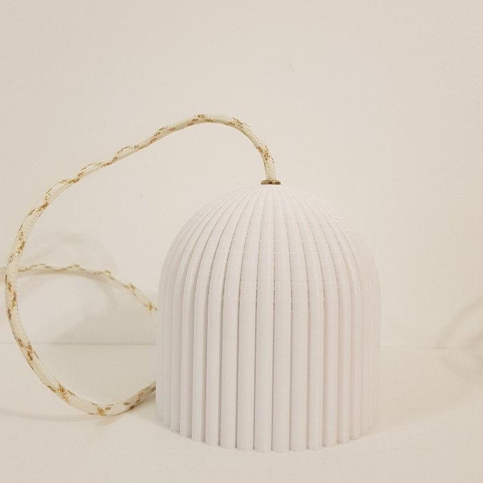 Campana de plástico realizada con teccnología 3D. Cable textil marfil con dorado o negro con dorado.