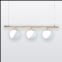 Colgante realizado en hierro y 3 tulipas esféricas de vidrio transparente u opal. Bajada con cable y tensor regulables. Colores disponibles en negro, óxido, cromo, niquel, bronce o cobre.