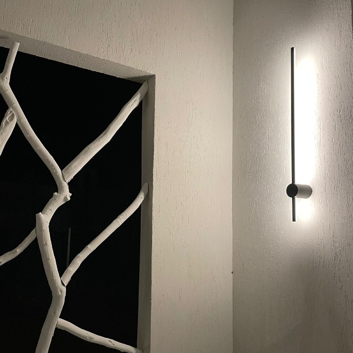 Aplique de pared lineal realizado en aluminio. Iluminación indirecta. Disponible en luz cálida o fria.