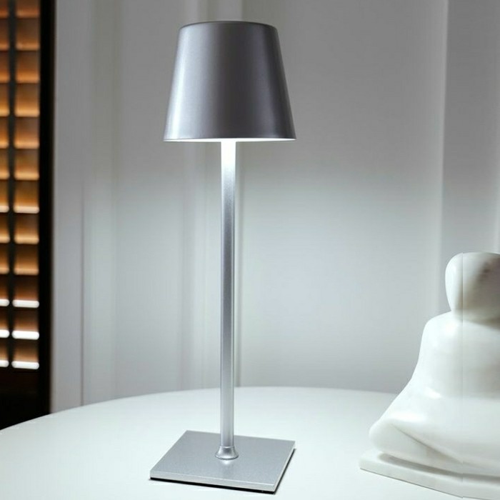 Velador inalámbrico dimerizable versátil y funcional. Equipada con un botón táctil en la parte superior que permite regular la intesidad y temperatura de la luz, proporcionando opciones de iluminación cálida, fria y neutra. Autonomía de 8 horas que brinda una luz duradera y eficiente.