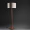 Lámpara de pie con pantalla de tela y pie de madera. APTA LED.