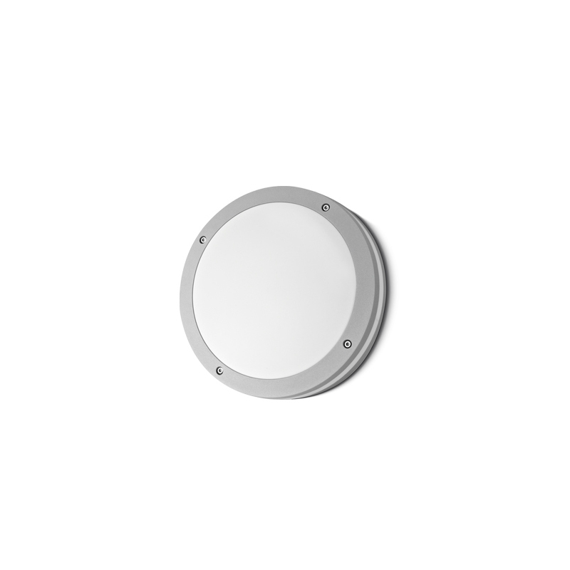 Aplique de exterior construido en aluminio con difusor de policarbonato opal. Iluminación directa y simétrica. IP 65.