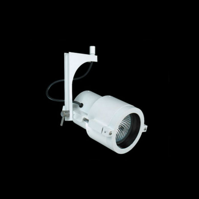 Cabezal orientable, construido en aluminio. Puede instalarse en rieles y bases. IP 20.